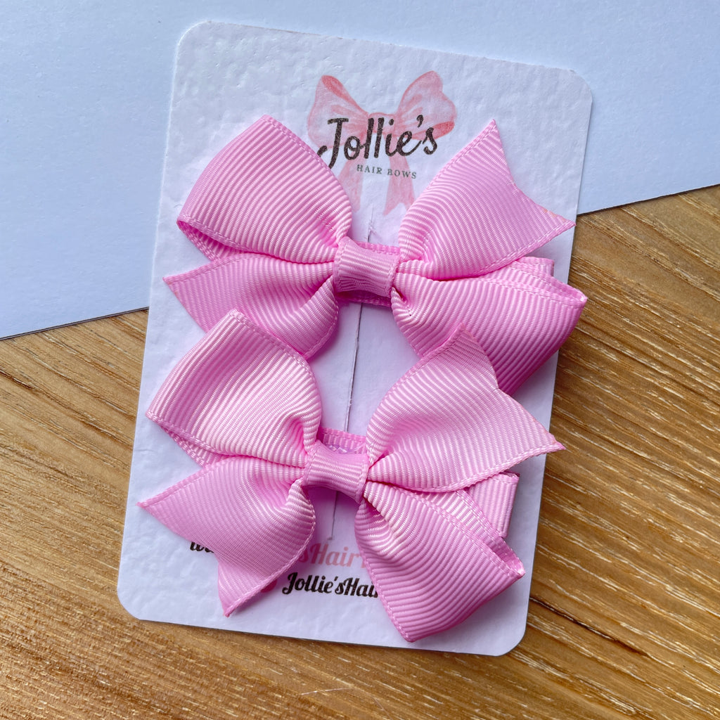 Made from premium grosgrain ribbon in a delicate tulip shade, each bow is securely attached to a lined alligator clip for a neat, comfortable hold.
