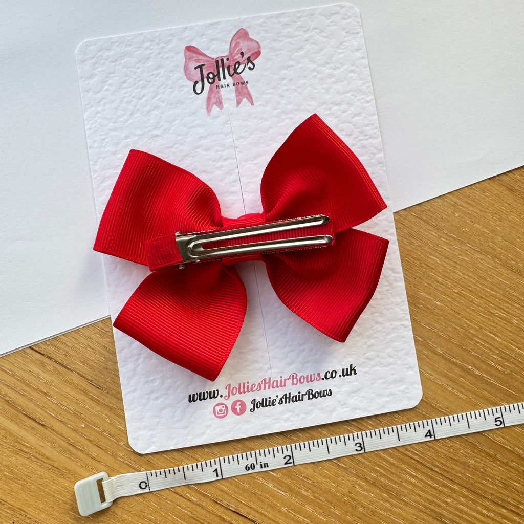Make a statement with our 4" Red Double Tail Hair Bow — bold, classic, and beautifully shaped.