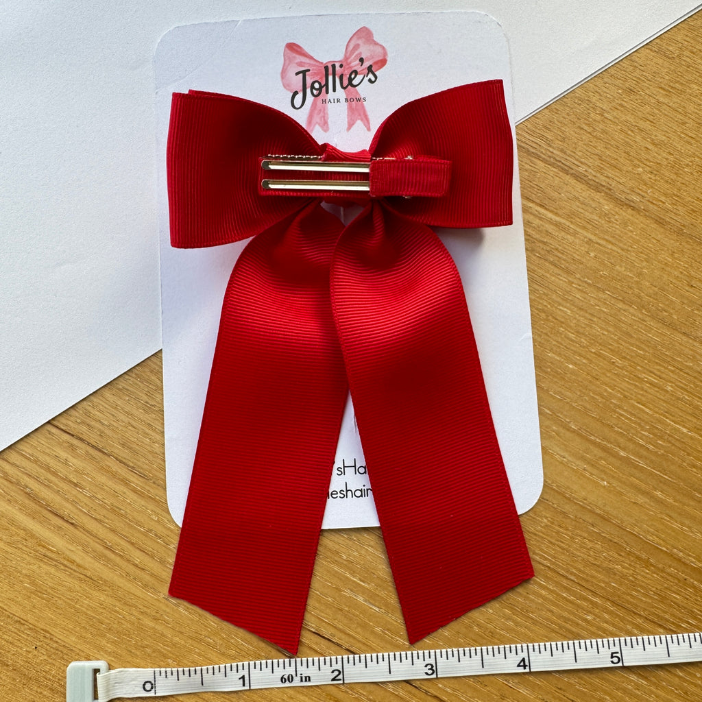 Elegant, bold, and beautifully balanced — our 5" Red Long Tail School Hair Bow adds a standout touch to any school uniform or hairstyle.