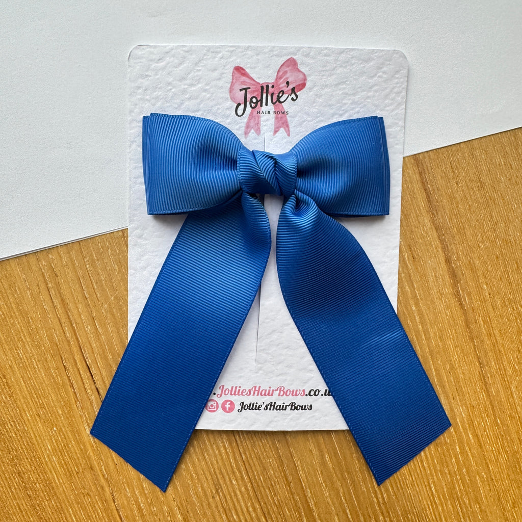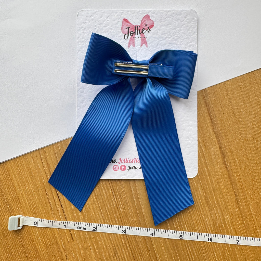 Elegant, bold, and beautifully balanced — our 5" Royal Blue Long Tail School Hair Bow adds a standout touch to any school uniform or hairstyle.
